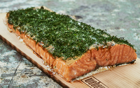 Lækre laksebøffer, der krydres og bages i 15 minutter ved 200 grader varmluft.